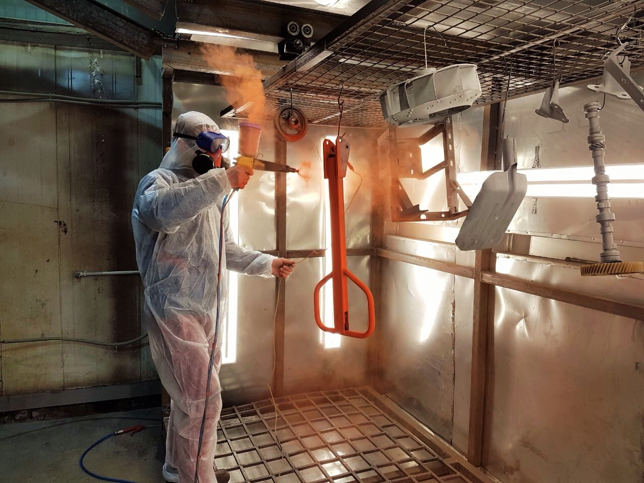Порошковая покраска металлических изделий в камере